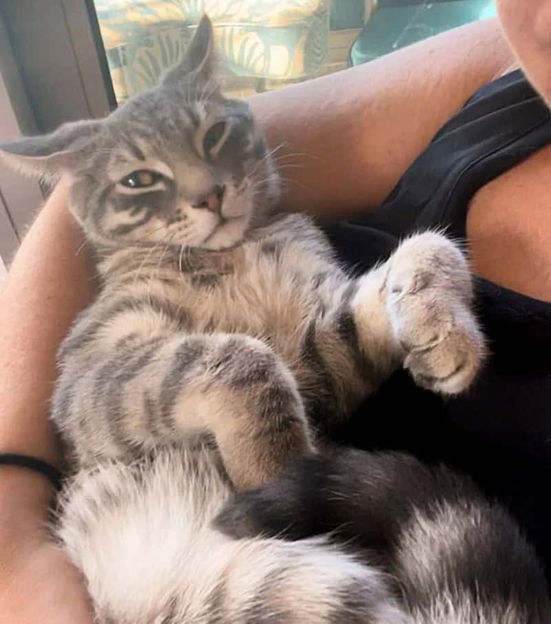 Within hours, he was kneading a blanket and purring joyfully, closing his eyes in bliss as Alyssa gave him gentle chin scratches.