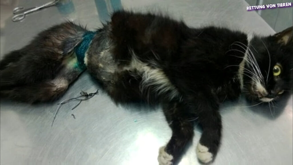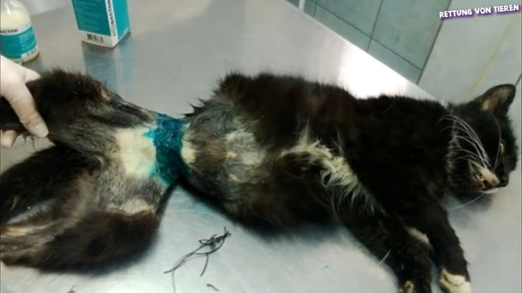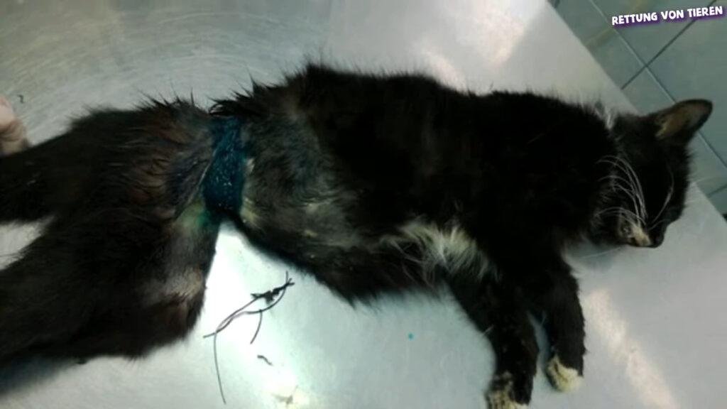 It was Pearl. Emily rushed to the kitten, horrified by the tight rope around her stomach. With trembling hands, she carefully untied the knot, freeing Pearl from the suffocating bond.