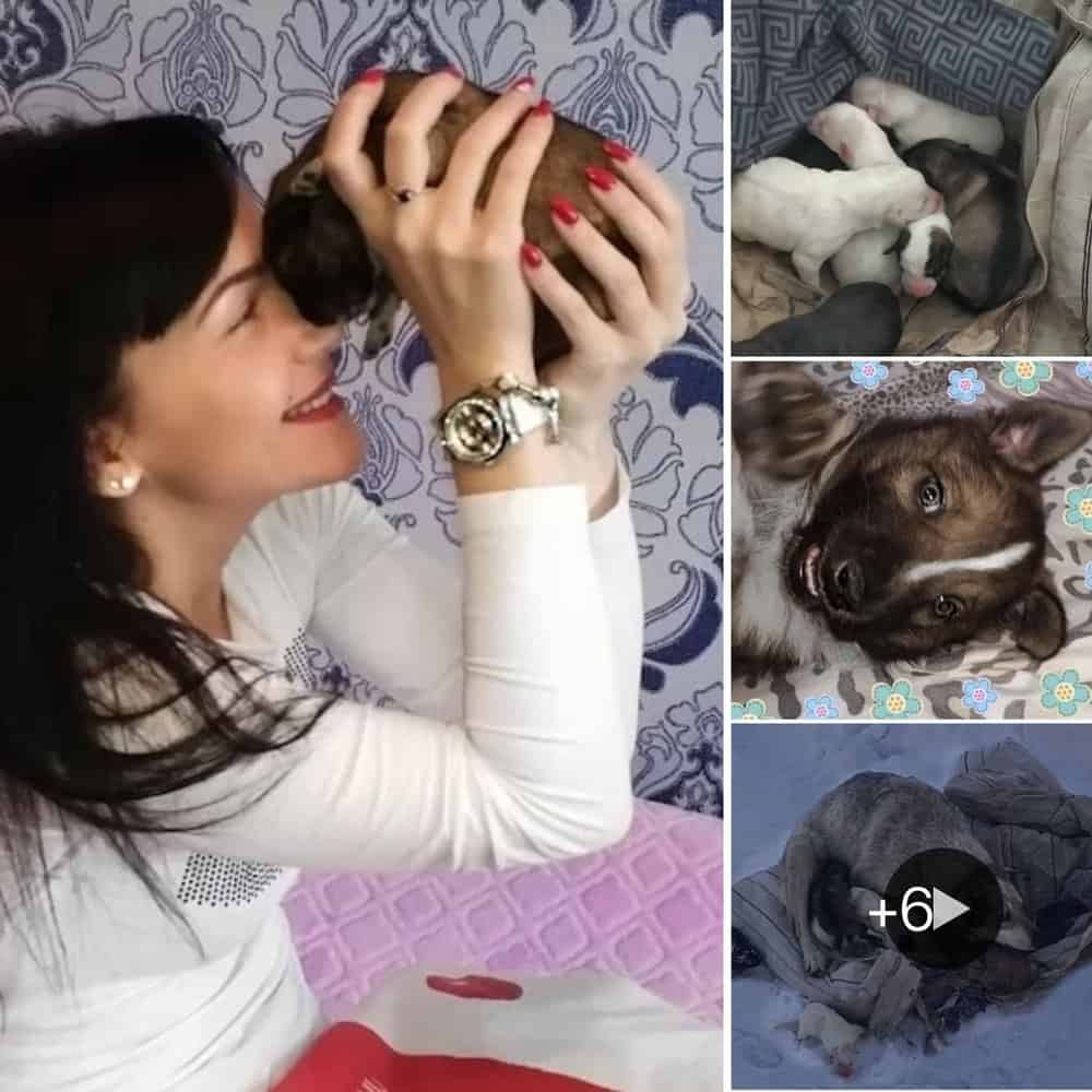 Heartwarming Rescue: Mama Dog and Her 10 Newborn Puppies Saved from Icy Snow