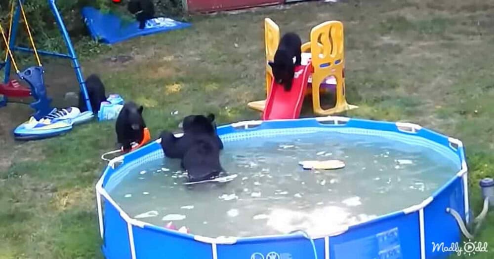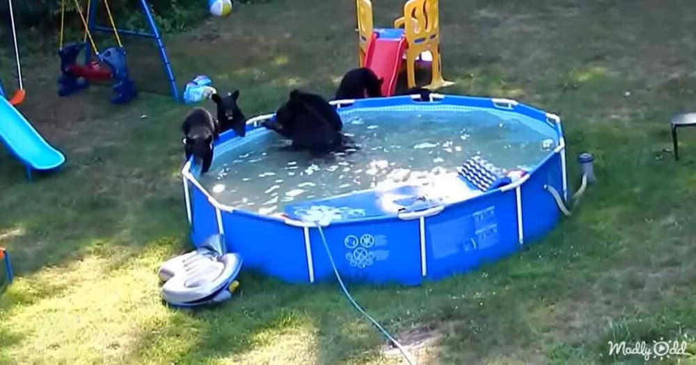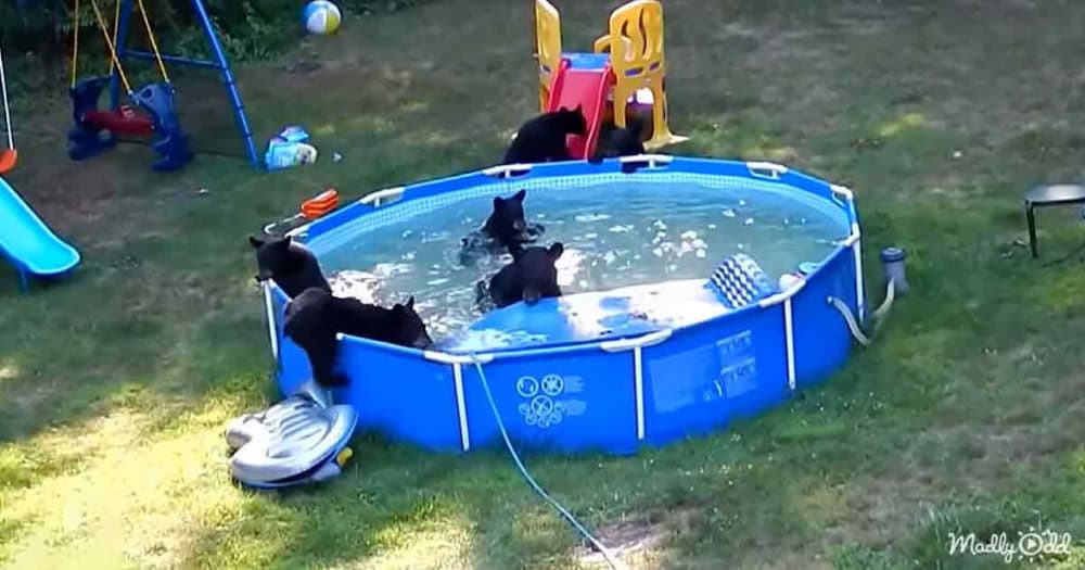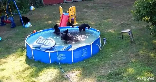 The playful bears needed a way to cool off, and the family’s pool was the perfect spot to splash around and have fun.