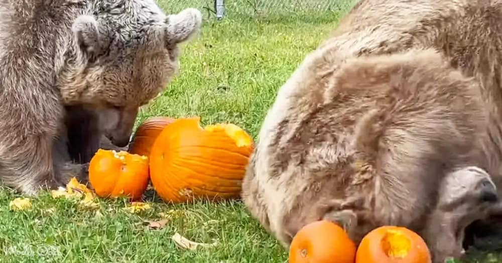 These playful bears are the stars of a viral video that’s bringing smiles and laughter to people across the internet with their unique pumpkin-destroying antics.