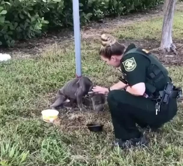 In Pompano, Florida, a police officer rescued two dogs tied to utility poles in extreme heat.