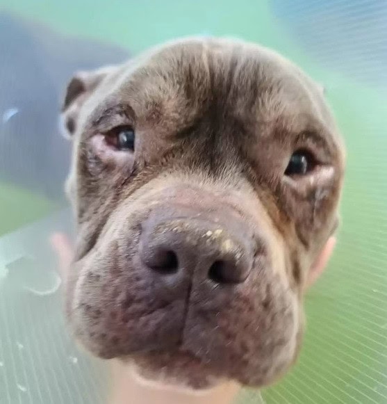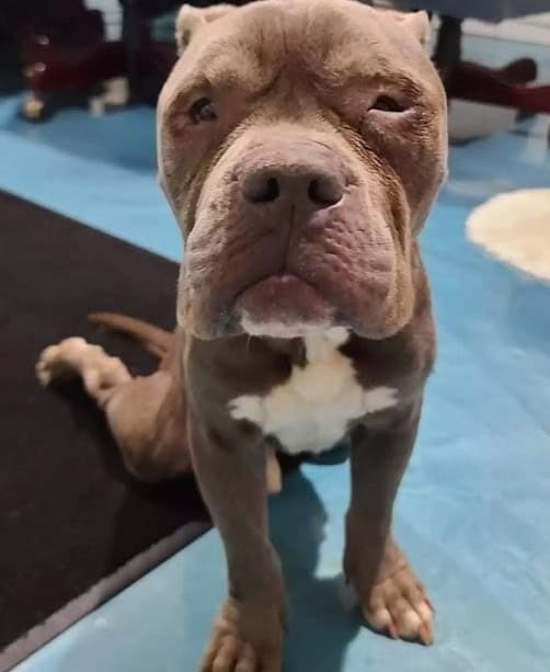 After several visits to the vet, Liam, a 17-pound pocket bulldog, is now recuperating at Roman’s home.