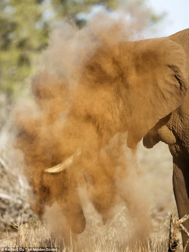 Du Toit followed the adult male elephant as it strolled through the park, pausing to scuff the ground and create a thick cloud of sand before covering itself with dust.