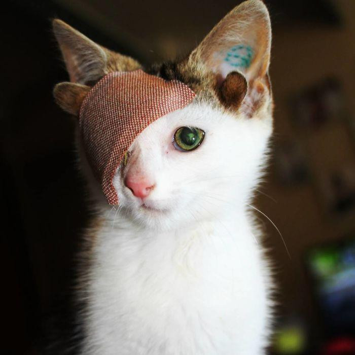 Four-Eared, One-Eyed Cat Finds Love and Happiness in a Forever Home