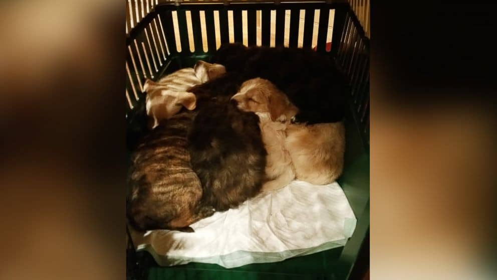 Following Annie’s lead, the men entered the woods and discovered her den, where her adorable pups lay nestled. Moved by Annie’s maternal devotion, they decided to lend a helping hand.