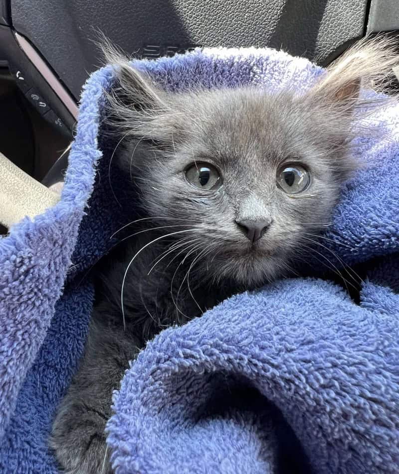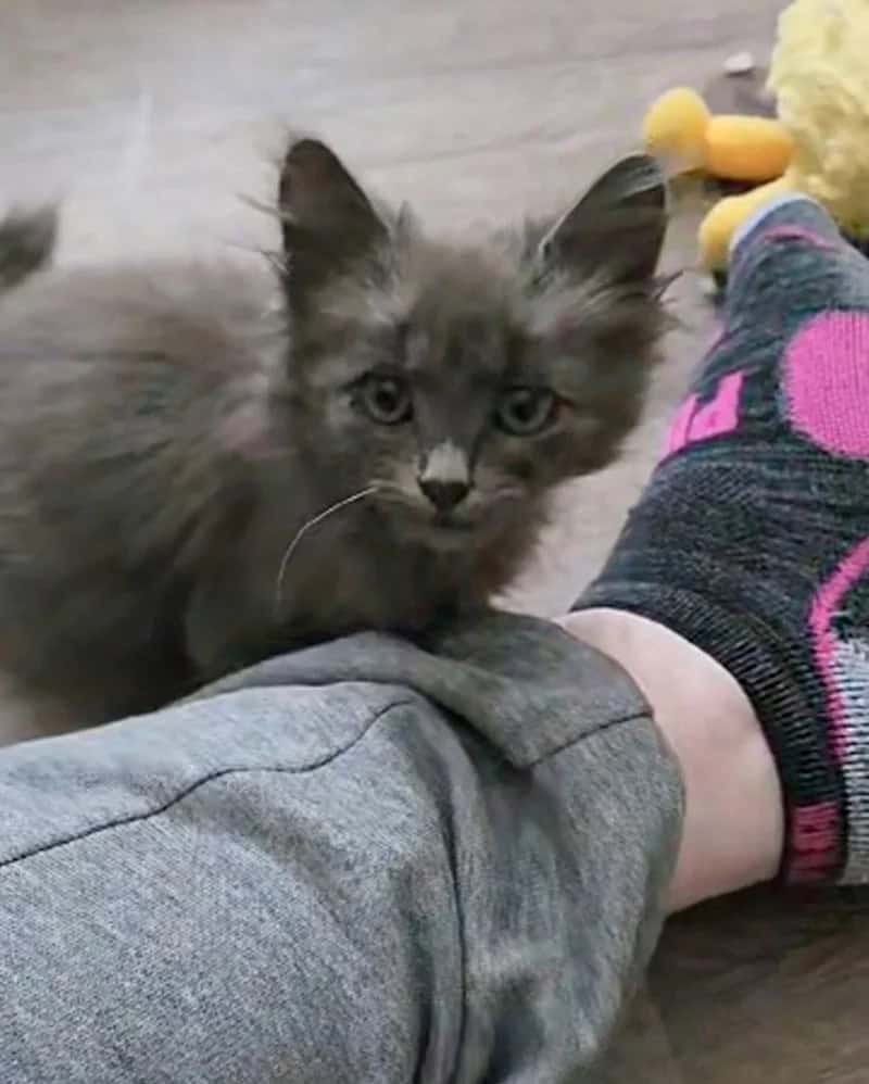 Clara quickly arrived with a large crate, unsure of the kitten’s size or temperament. To her surprise, Scrunkle didn’t run away; instead, he welcomed her approach.