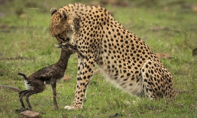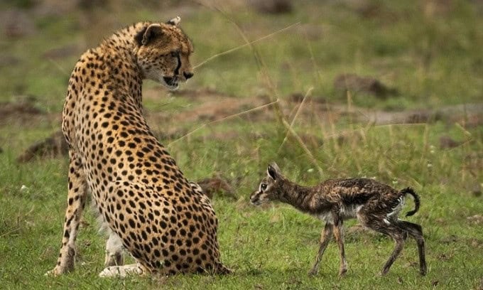 As the tiny gazelles approached the cheetah just moments after birth, the scene appeared tender but soon turned tragic.