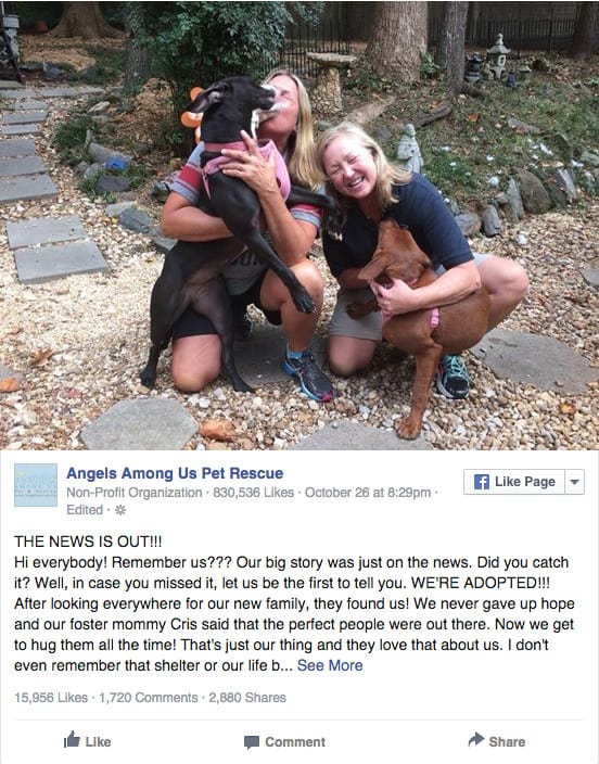 Within two hours and six minutes, the post reached the right person – a compassionate individual willing to offer the dogs a foster home.