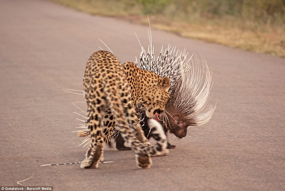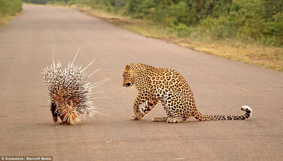 The encounter between the leopard and the porcupine is a testament to the unpredictability and resilience of wildlife in their natural habitats, offering a glimpse into the intricate dynamics of predator-prey relationships.