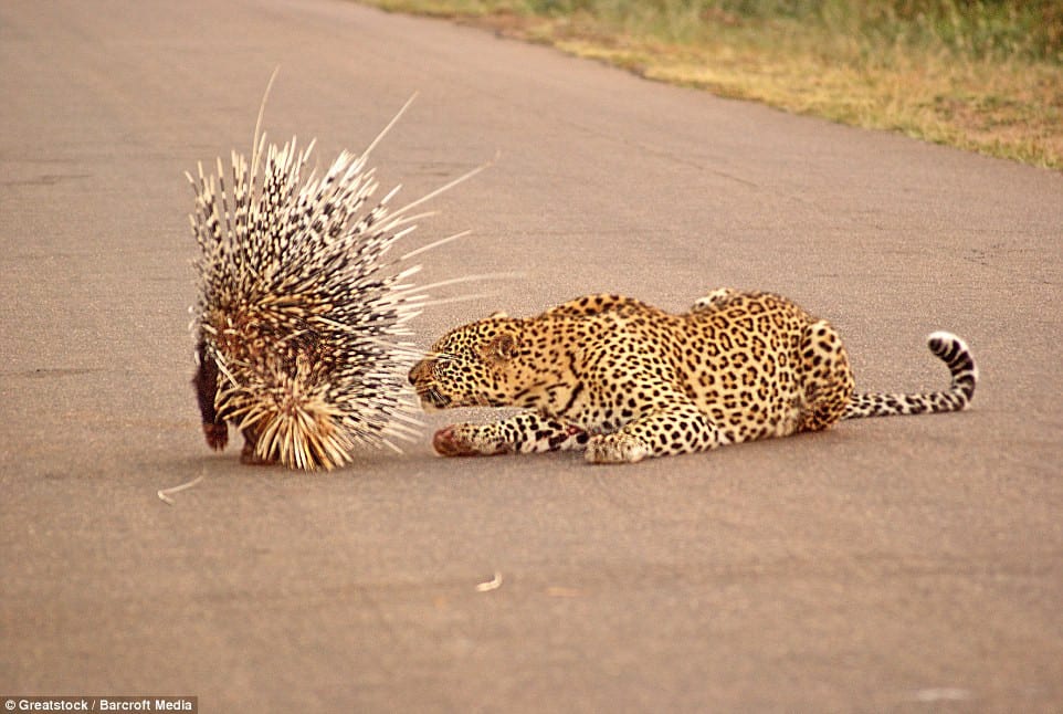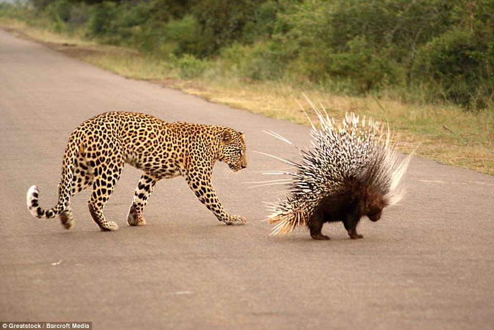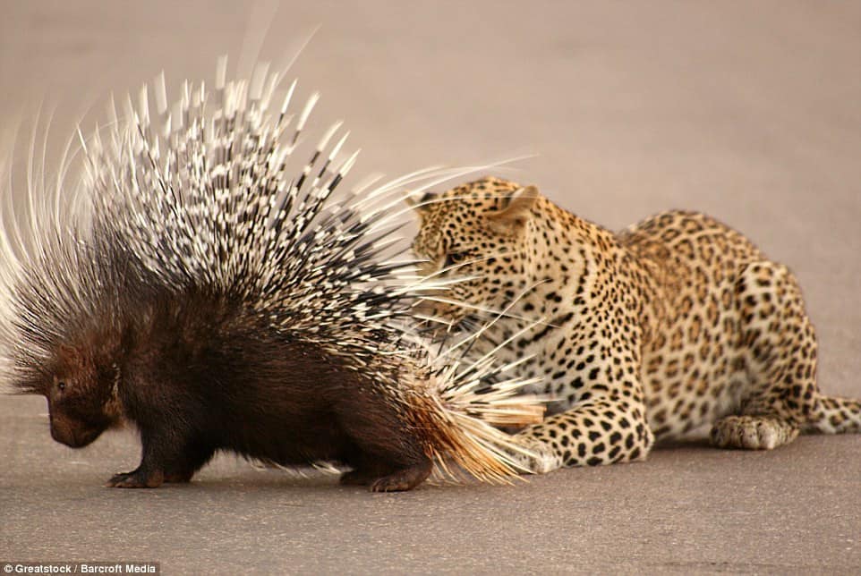 Despite the tense confrontation, the porcupine emerged victorious, forcing the leopard to concede defeat and retreat to nurse its wounds.