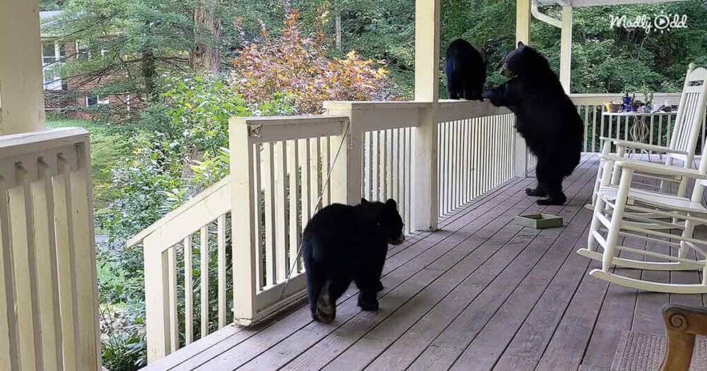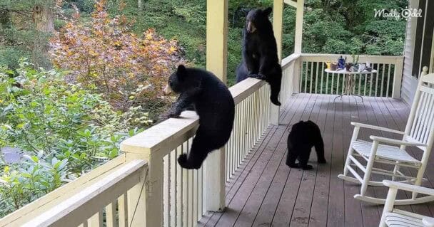 Patrick Conley was enjoying peaceful moments on his porch when he got some unexpected guests: a wild bear and her two cubs.