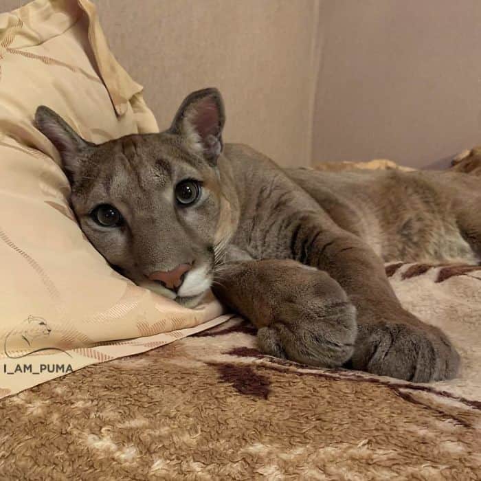 Meet Messi, the 90lb puma who defies the norm by residing in Russia with Mariya and Aleksandr Dmitriev.