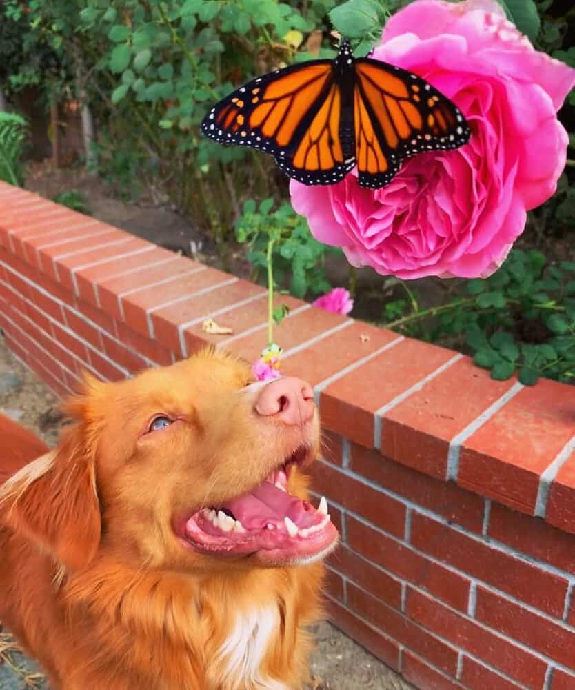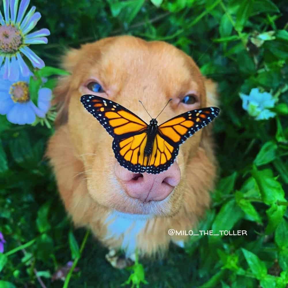 Jen, an enthusiast of monarch butterflies, noticed Milo’s gentle interactions with these colorful creatures in her garden.
