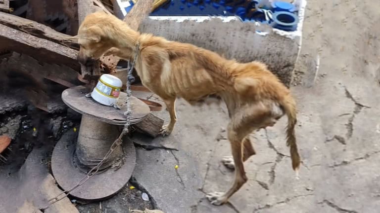 Tied up with nothing to eat, her emaciated body bore the scars of her painful existence. Driven by hunger, she resorted to chewing on timber to survive.