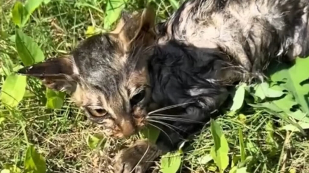 Just as hope seemed lost, fate intervened in the form of a few compassionate onlookers. Among them, a young woman, clutching her child’s hand, noticed the struggling cat.