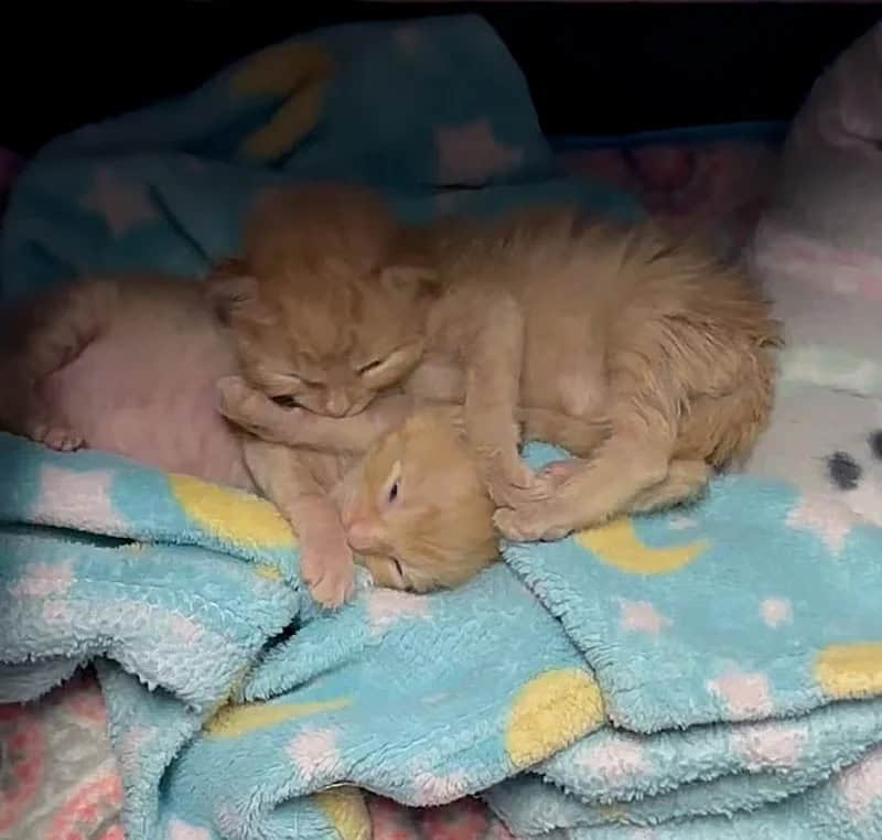 Two tiny ginger tabby kittens, Cheeto and Frito, were brought to Today Tomorrow Forever Animal Rescue at only two weeks old, seeking a fresh start.