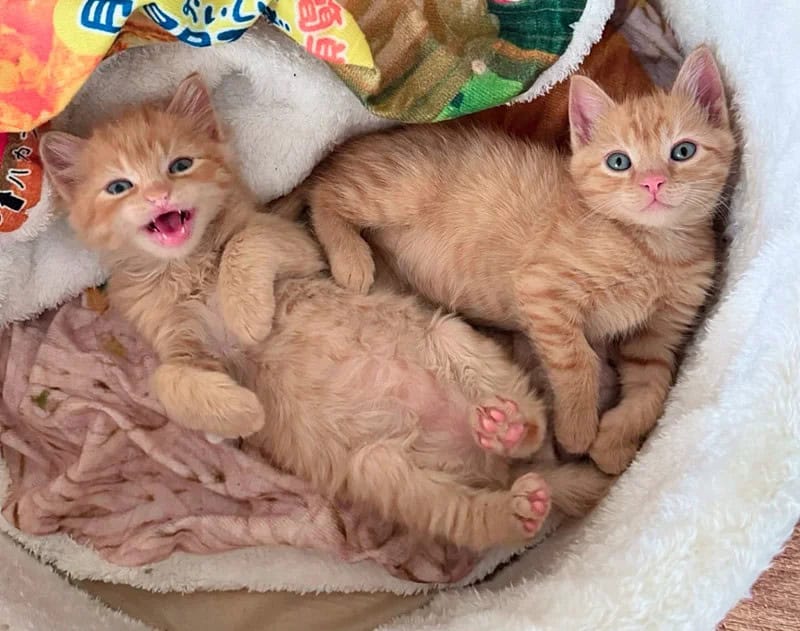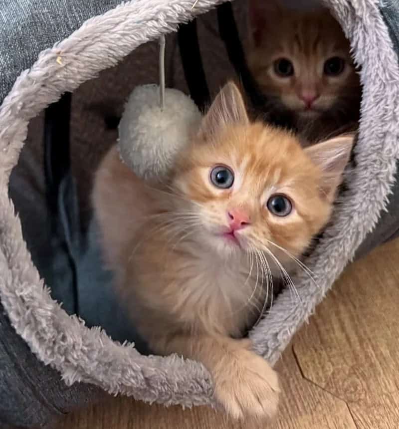 Now thriving and endlessly playful, Cheeto and Frito have grown into joyful young cats, bringing constant laughter and energy to those around them.