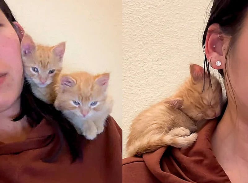 Within days, they settled comfortably, finding warm spots on Asa’s lap and shoulders as their favorite places to curl up.