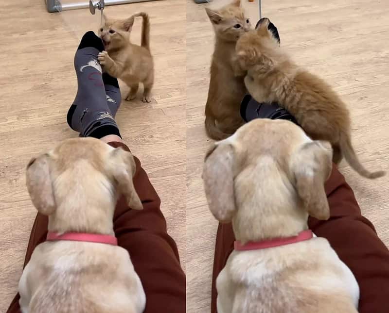 The kittens’ high spirits found a new outlet with Kona, the family dog, who welcomed them like a mother.