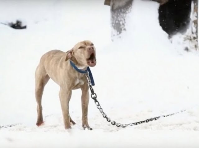 Officer Justin Bruzgul from New York found Kiah, a Pit Bull, chained in the snow, shivering and crying for help.